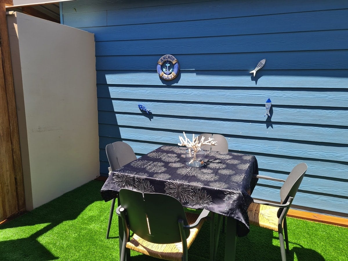 Petite villa de 50m², composée d’une chambre avec lit double, d’un salon avec lit double escamotable très confortable, entièrement climatisée.