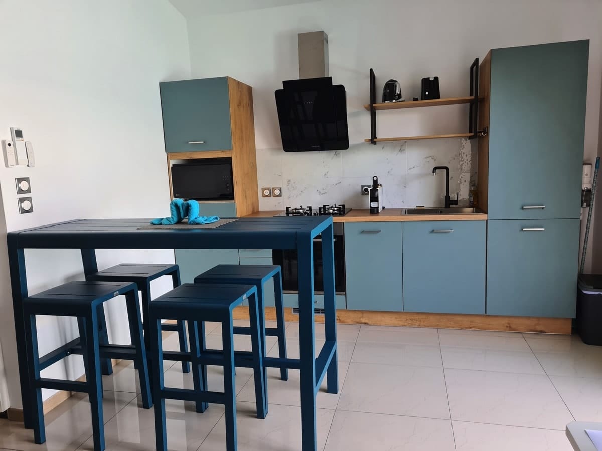- Équipements : Vaisselles, Plaques de cuisson, Micro-ondes, Bouilloire, Toaster, Machine à café, Lave linge, Fer à repasser, Wifi, Télévision, Borne voiture électrique, Lave-vaisselle, Terrasse 15m², Parking privé, etc ...